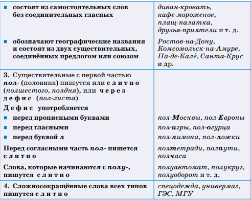 - Прочитайте правила правописания сложных имён существительных. С какими из них вы уже знакомы, а какие правила являются для вас новыми?