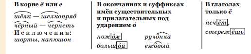 Правописание букв о, е, ё после шипящих