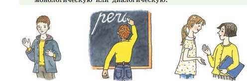 Рассмотрите рисунки и определите, какую речь имел в виду художник в каждом случае: устную или письменную, монологическую или диалогическую.