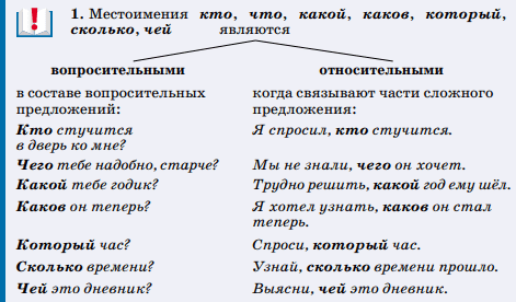 В первой части, обозначенной цифрой 1, представлены предложения, где слова типа «кто«, «что«, «какие«, «какова«, «которому«, «сколько«, «чей» используются как в вопросительных предложениях, так и в сложноподчиненных предложениях. В вопросительных предложениях они служат для задания вопроса о лице, предмете, признаке, количестве или принадлежности (например, «Кто сегодня дежурный?«). В сложноподчиненных предложениях эти же слова выступают уже как относительные местоимения или наречия, соединяя главную часть предложения с придаточной изъяснительной. При этом они не только служат средством связи, но и являются членами предложения в придаточной части. Например, в предложении «Никто не знал, кто сегодня дежурный» слово «кто» связывает главную часть «Никто не знал» с придаточной «кто сегодня дежурный» и выполняет роль подлежащего в придаточной части. Аналогично, в «Мама спросила, какие инструменты мне понадобятся» слово «какие» связывает части и является определением в придаточной части. Таким образом, первая часть текста демонстрирует двойную роль этих слов: вопросительную в прямых вопросах и относительную в составе сложноподчиненных предложений.