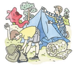 Третий пропуск описывает совместное складывание палатки с Мишкой: «Я … Он …». Когда два человека выполняют одно общее дело, они часто распределяют обязанности для повышения эффективности. Складывание палатки состоит из нескольких этапов. Я предложил разделить эти этапы между героями: «Я вынимал колышки. Он складывал тент.» Выбор этих конкретных действий обусловлен тем, что вынимание колышков (или кольев) — это одна из первых и необходимых операций при демонтаже палатки, после чего уже можно приступать к сворачиванию самого тканевого тента. Эти действия дополняют друг друга и показывают слаженную работу команды. «Вынимал колышки» — это активное, конкретное действие, которое часто поручается одному человеку, пока другой готовится к следующему этапу. «Складывал тент» — это более масштабная и кропотливая работа, которая требует определённой сноровки. Такое распределение обязанностей делает сцену реалистичной и динамичной, демонстрируя, что каждый внёс свой вклад в общее дело, и они работали вместе, но выполняли разные функции.