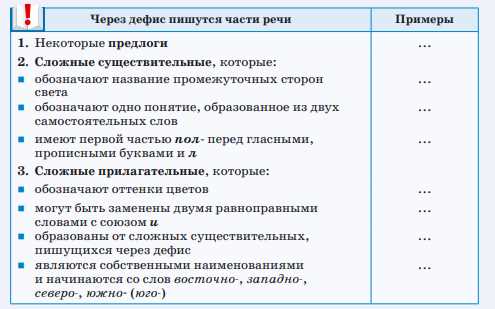 Части речи, которые пишутся через дефис: Некоторые предлоги: из-за, из-под. Эти предлоги используются для указания причины или направления и всегда пишутся через дефис, что является важным правилом русского языка. Сложные существительные: обозначают название промежуточных сторон света: юго-запад, северо-восток. Эти слова образованы путем соединения двух частей, каждая из которых обозначает одну из сторон света, и пишутся через дефис для обозначения промежуточного направления. Также сложные существительные могут обозначать одно понятие, образованное из двух самостоятельных слов: диван-кровать, премьер-министр. В таких случаях дефис используется для соединения двух равноправных понятий, которые вместе образуют новое значение. Кроме того, сложные существительные могут иметь первой частью пол- перед гласными, прописными буквами: пол-лимона, пол-яблока, пол-Европы. Здесь дефис используется для обозначения половины чего-либо, и это правило применяется только в случаях, когда вторая часть слова начинается с гласной или прописной буквы.
