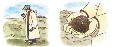 Агроном, исследующий почву. Почва, исследуемая агрономом.
