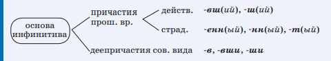 - Опираясь на схему, расскажите об образовании причастий и деепричастий от основы инфинитива.
