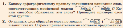 Рассмотрим примеры, приведённые в первом пункте задания, которые служат иллюстрацией к правилу. Слово ветряной образовано от существительного ветер. Мы видим, что к основе ветер- добавлен суффикс -ян- (с чередованием ер на р и добавлением ян), что даёт нам прилагательное, обозначающее отношение к ветру. Поскольку оно образовано с помощью суффикса -ян-, то, согласно правилу, пишется с одной Н. Аналогично, прилагательное румяный образовано от существительного румяна. Здесь также присутствует суффикс -ян-, указывающий на признак, связанный с румянцем, и поэтому пишется одна Н. Третий пример — костяной, образованный от существительного кость. Суффикс -ян- в этом слове указывает на материал, из которого что-либо сделано (из кости), и, следовательно, также пишется с одной Н. Все эти слова образованы суффиксальным способом, что означает присоединение суффикса к основе исходного слова для образования нового слова с новым значением.