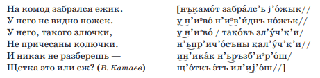 - Подготовьтесь к чтению стихотворения вслух. Для этого несколько раз прочитайте текст в транскрипционной записи, обращая внимание: 1) на произношение звуков в словах; 2) на ударение в словах; 3) на паузы внутри предложений (/) и паузы конца предложений (//).