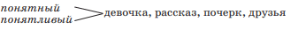 Словосочетания с прилагательными от корня «понятн-«: Понятный рассказ, понятный почерк, понятливая девочка, понятливые друзья.