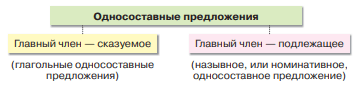 Различают две основные группы односоставных предложений в зависимости от того, какой именно главный член составляет их грамматическую основу.