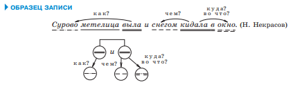 - Составьте схемы предложений, обозначая однородные члены и зависимые от них слова. Подчеркните остальные члены предложения.