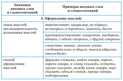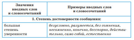 Внимательно рассмотрите таблицу. Пользуясь данной в ней информацией, расскажите о значении вводных слов и словосочетаний.