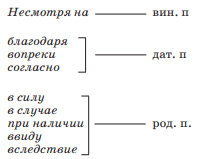 С указанными производными предлогами составьте сначала сочетания слов, а затем включите эти сочетания в предложения в качестве обособленных обстоятельств. Назовите условия их обособления.