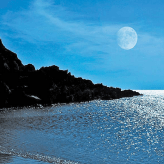 Море, огромное, лениво вздыхающее у берега, — уснуло и неподвижно в дали, облитой голубым сиянием луны. Мягкое и серебристое, оно слилось там с синим южным небом и крепко спит, отражая в себе прозрачную ткань перистых облаков, неподвижных и не скрывающих собою золотых узоров звёзд. <…> По старому камню, изрезанному частой сетью глубоких трещин, бегают тени. Старуха замолчала, вздыхая. Я представил себе воскрешаемых ею людей. (М. Горький)