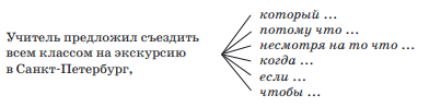 И наконец, предложение: «Учитель предложил съездить всем классом на экскурсию в Санкт-Петербург, чтобы увидеть всю красоту северной столицы». В этом сложноподчинённом предложении главная часть — «Учитель предложил съездить всем классом на экскурсию в Санкт-Петербург» — описывает действие. Придаточная часть — «чтобы увидеть всю красоту северной столицы» — указывает на цель, ради которой будет совершено действие. Она отвечает на вопрос зачем? или с какой целью? (Зачем учитель предложил съездить?). Связь между частями осуществляется с помощью союза «чтобы». Такая придаточная часть, которая указывает на назначение или цель действия, о котором говорится в главной части, называется придаточным