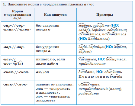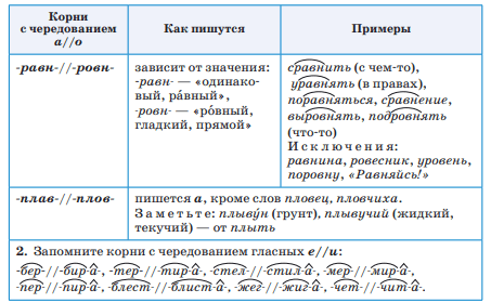 - Изучите таблицу и, опираясь на её содержание, расскажите о правописании корней с чередованием гласных. Информацию о каких корнях также нужно включить в ваш рассказ?